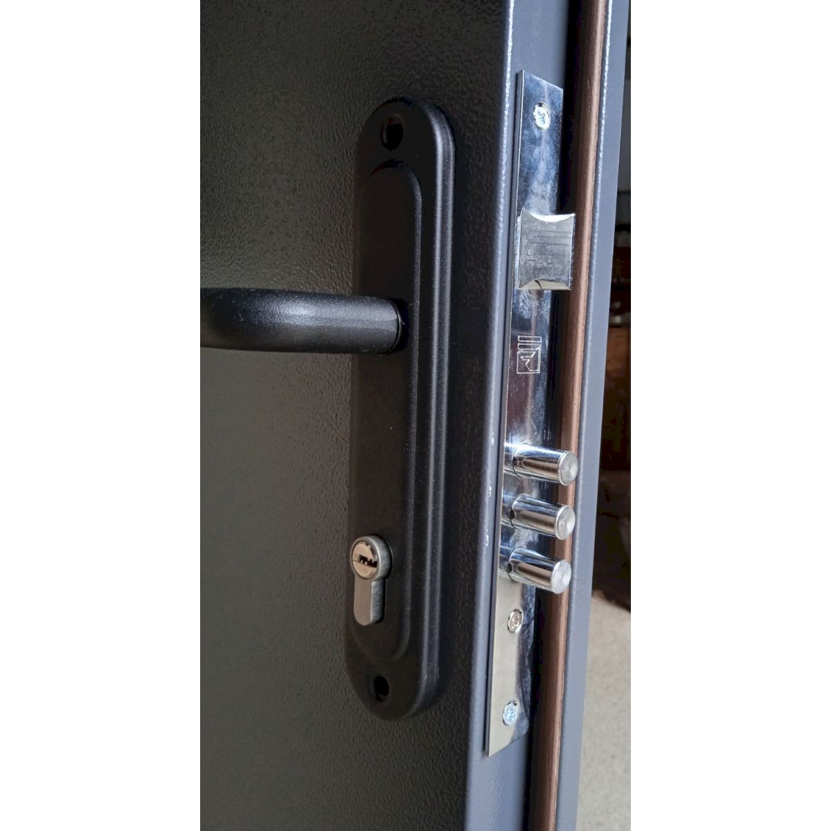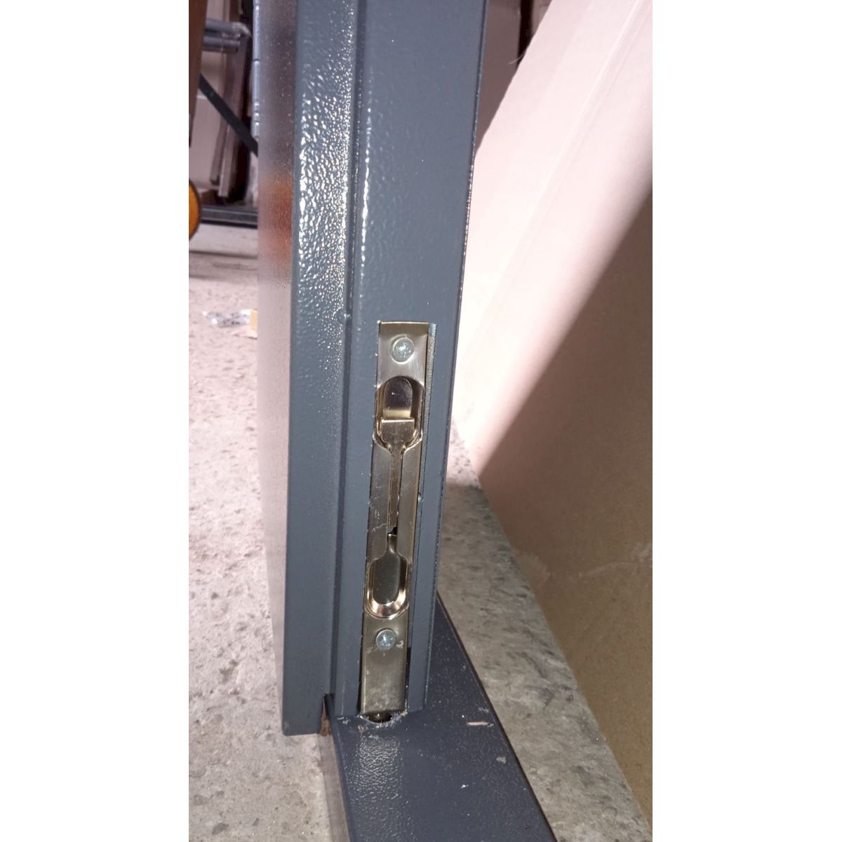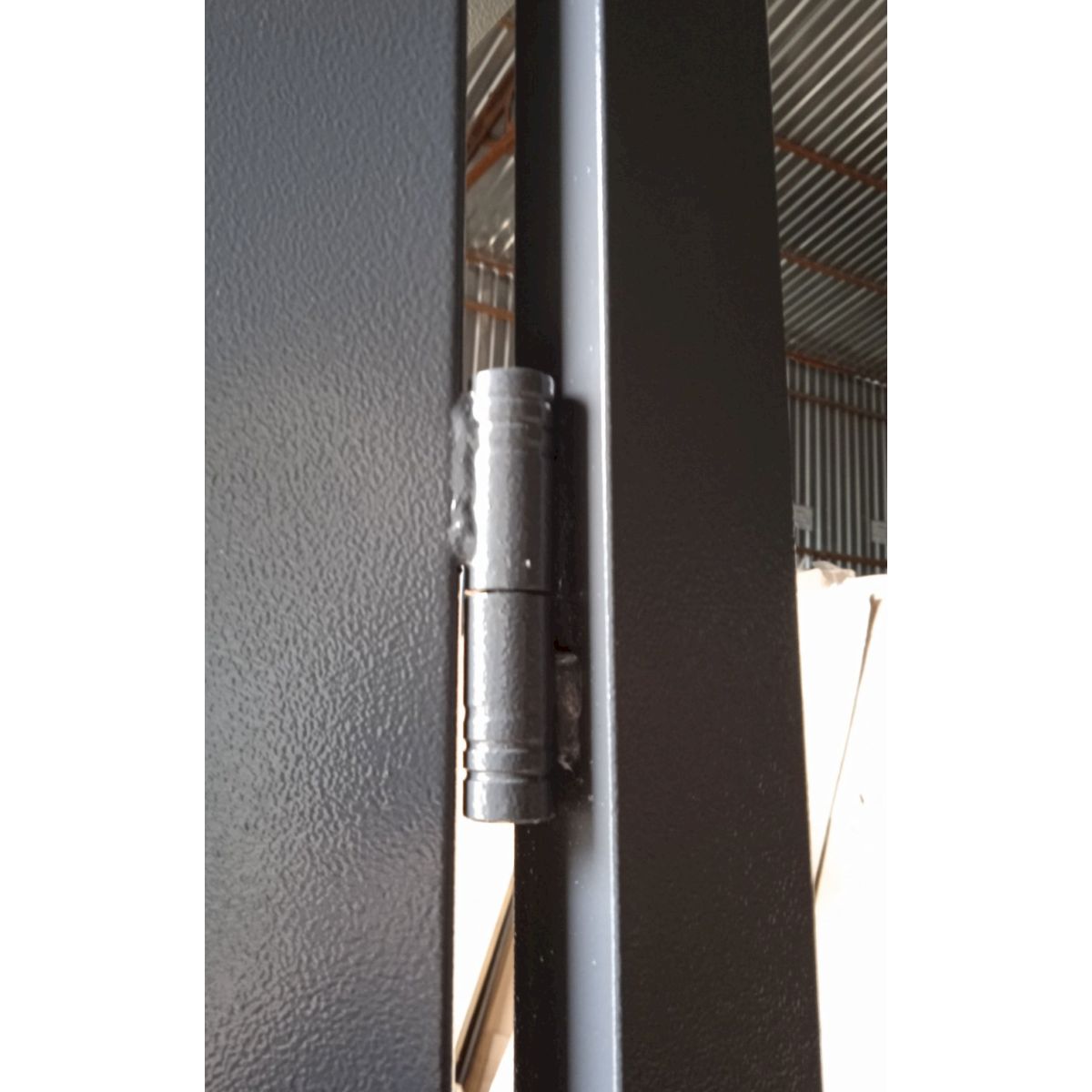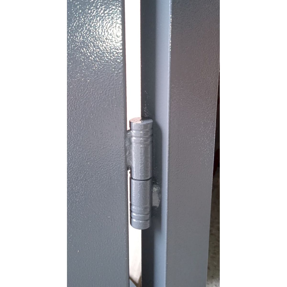 Металеві технічні двері 1200 мм пофарбовані в універсальний колір RAL 7024 (сірий), який відрізняється стійкістю до забруднень і добре вписується в індустріальні інтер’єри. Конструкція дверей оснащена коробкою з профільної труби та циліндровим замком, що забезпечує базовий рівень безпеки та надійну фіксацію полотна.