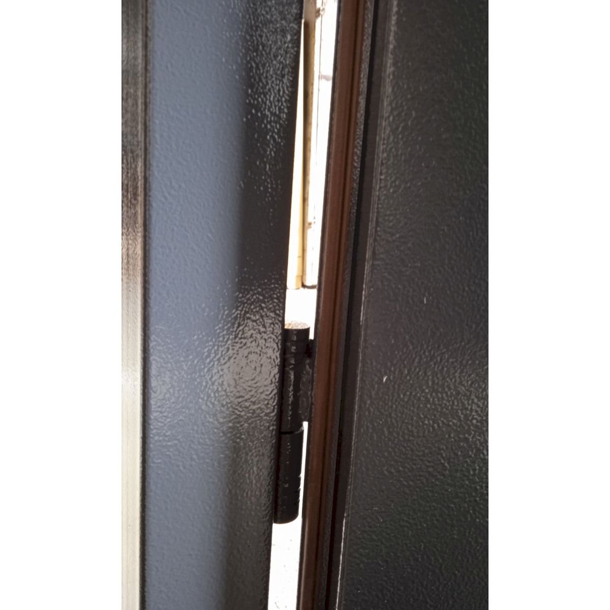 Полотно технічних дверей виготовлене з двох листів сталі товщиною 45 мм, а всередині використовується утеплення з мінеральної вати, яке забезпечує базову тепло- та шумоізоляцію. Така конструкція дозволяє ефективно експлуатувати ці двері в умовах підвищених холодів або шумного середовища, що особливо актуально для виробничих об’єктів, гаражів або складських приміщень.