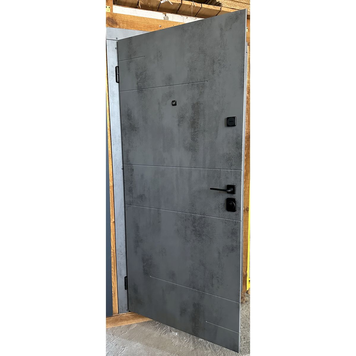 Конструкція дверей виготовлена з міцного металу, що забезпечує довговічність та надійність експлуатації. Усередині дверного полотна використовується утеплення, яке допомагає зберігати тепло у квартирі та зменшує рівень шуму з під’їзду.